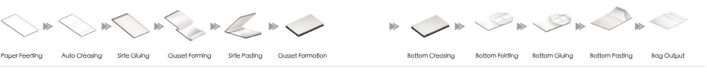 Automatic sheet-feeding paper bag making machine is suitable for the mass bag production, it is the first choice of medium and top grade handbag device. The product adopts mechanical, electricity, light,gas integration technology, setting a number of its proprietary technology, use sheet paper as raw material , can one-time finish: paper feeding, positioning, die-cutting, tube forming, gusset forming, square bottom folding and gluing automatic, and then compaction output.The variable speed drive technology, combined with the system of vertical and horizontal creasing, bottom folding realize trackless bag molding process. using the PLC programmable control, frequency control technology to realize the integral multi-dimensional control, more centralized control and single point remote control operating system . with characteristics of good quality and high efficiency,its technology ranks leading level in domestic similar products.