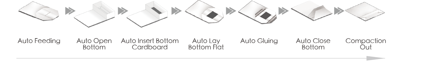 ZB50S bottom gluing machine automatically feeding unclosed paper bag. After open bottom, auto insert bottom cardboard(not intermittent type), auto spray hot melt glue、bottom close and compaction output to realize the bottom close and bottom cardboard insert function. This machine is operated by touch screen, controlled by Optical fiber, equip with 4 pipe and 4 hot melt spray gun which can control the spraying length and quantity independently or synchronously. This machine can spray glue evenly by high speed and precision, which can produce various kinds of paper bags.